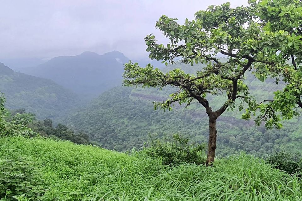 From this vantage point, visitors can enjoy sweeping views of the Sahyadri mountain ranges, verdant valleys, and dense forests that stretch as far as the eye can see.