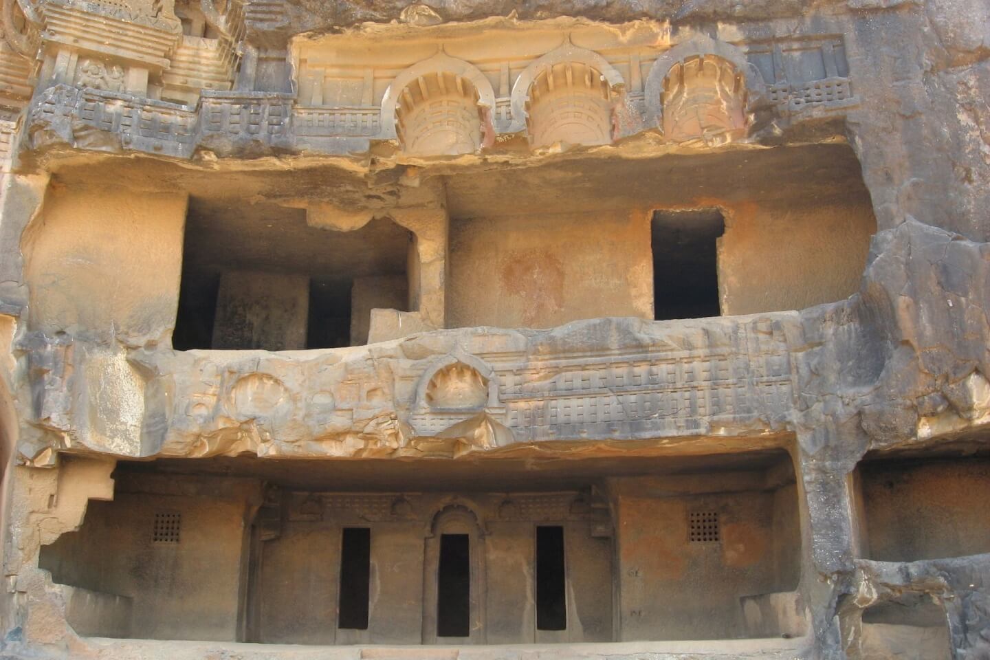 Bhaja Caves also have several rock-cut viharas with pillared verandas in front. These have small cells with stone beds. Some cells have stone benches and water cisterns as well. Most of these viharas are single-storied; a few of them are double-storied viharas too.